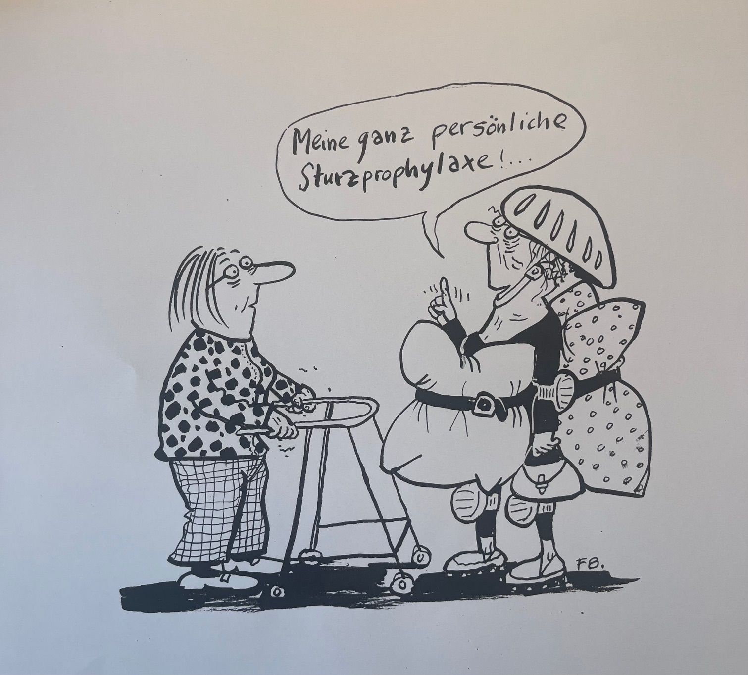 Im Laufe des Lebens steigt das Sturzrisiko. In vielen Fällen sind die verheerenden Folgen eines Sturzes (Oberschenkel Hals Bruch, Schädel Hirn Trauma, vorzeitiger Pflegefall) dem Bewegungs-mangel geschuldet. Stürze lassen sich nie restlos verhindern, aber deren Anzahl mindern und die Folgen lindern. Beweglichkeit, Kraft, Reaktion, Wachheit, Wendigkeit sind Grundpfeiler. Sie können nicht früh genug damit anfangen diese zu üben. Und es ist nie zu spät. Allerdings sollten Sie bis zum Lebensende dabei bleiben. Der Spaß, die (wieder-) gefundene Bewegungsfreude und „Mit-Turner“ wirken untertützend. Nach wie vor: Bewegungs-armut erhöht das Sturzrisiko. Aktivität, körperlich und geistig, sowie Kommunikation und Körper-/ Selbstbewusstsein senken es.